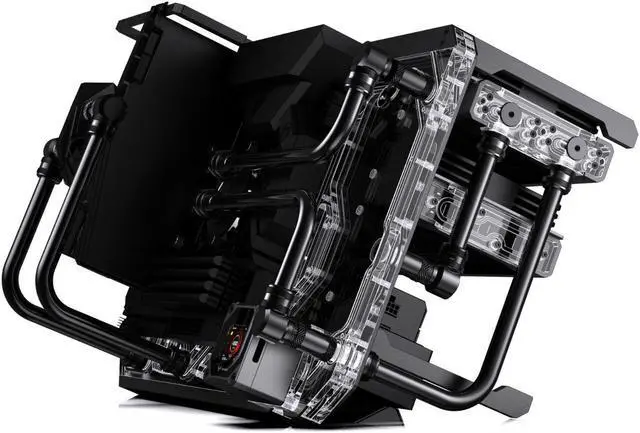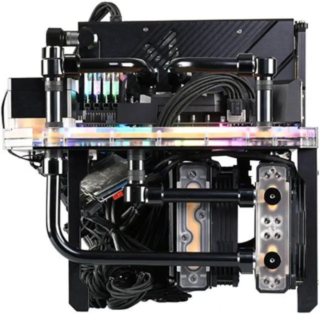 The central piece, a seamlessly incorporated distribution plate, simplifies the water loop arrangement and improves the visual attractiveness. The bench's adaptable design allows for personalized configurations, and its small size makes it perfect for displaying premium components without a bulky case.