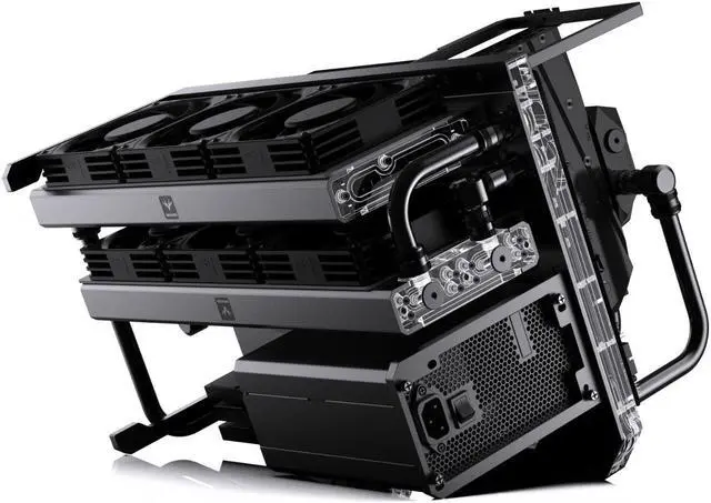 The central piece, a seamlessly incorporated distribution plate, simplifies the water loop arrangement and improves the visual attractiveness. The bench's adaptable design allows for personalized configurations, and its small size makes it perfect for displaying premium components without a bulky case.