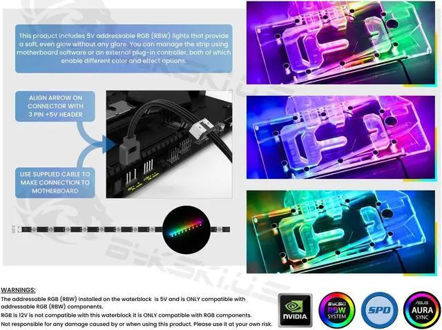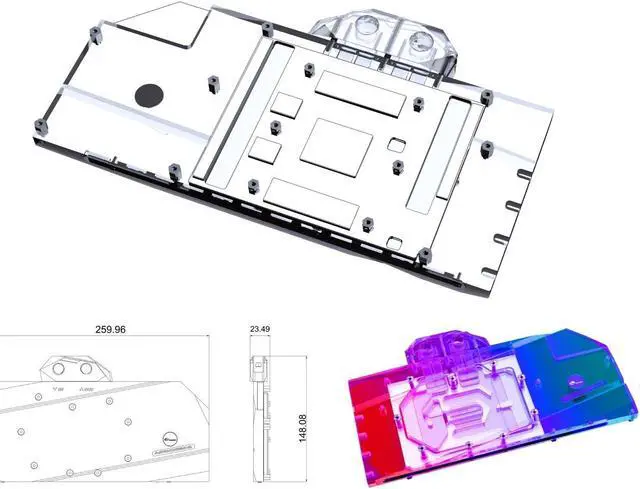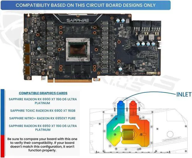 This A-SP6900XTSE-X-V2 full-coverage block directly cools the video card core (GPU), graphics memory (RAM), and voltage regulator modules (VRM). By directly cooling these components, you can achieve great temperatures and reach higher overclocks while extending the overall lifespan of your card by running at lower temperatures.