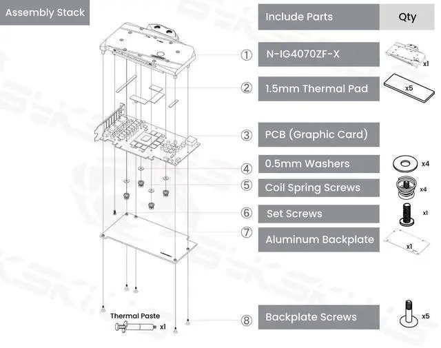 This N-IG4070ZF-X full-coverage block directly cools the video card core (GPU), graphics memory (RAM), and voltage regulator modules (VRM). By directly cooling these components, you can achieve great temperatures and reach higher overclocks while extending the overall lifespan of your card by running at lower temperatures.