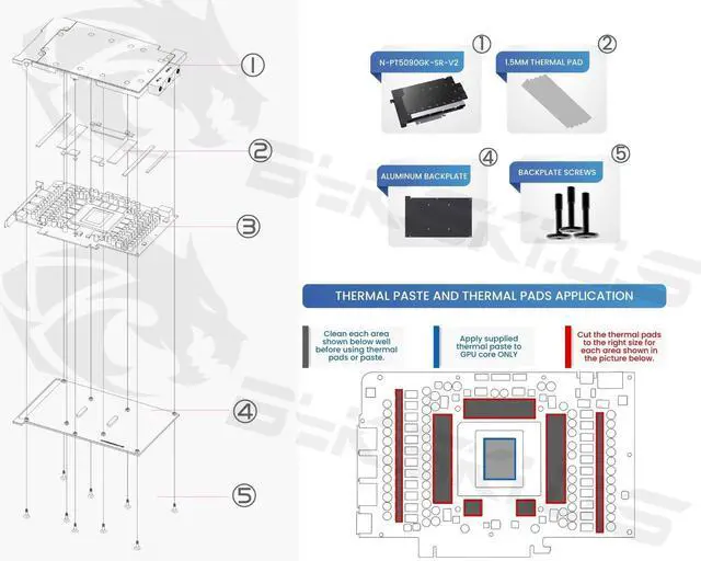 Built for continuous use, theKEY_TAB N-PT5090GK-SR-V2 water block features a combination of metal and POM, ensuring both safety and longevity. Its stainless steel panel design allows for an ultra-slim profile of the GPU block.