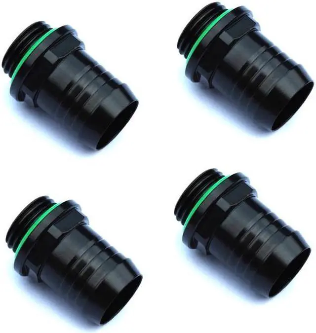 Bitspower barb fitting for water-cooling systems. Compatible with tubing with 1/2" ID (inner diameter) and waterblocks with G1/4" threads. Thread Length: 5mm. Tubing Side Length: 15mm. Sold as a 4-pack. Model: TR-BP-MBWP-C01-4P