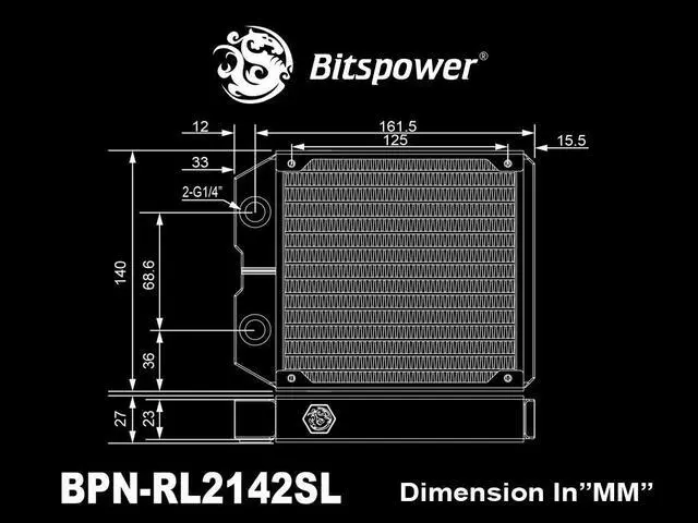 Bitspower Leviathan II 140 Radiator with Single Wave Fins (Thickness 27mm) As a key component of water cooling loops, the Bitspower Leviathan II 140 radiator can be equipped with fans (fans are sold separately), which is helpful for effective heat dissipation. The radiator is made of copper which has high thermal conductivity. Concise wave-shaped heat dissipation fins, greatly increase the heat dissipation area. Used with fans, it will effectively dissipate heat from the water cooling loop, and reduce the water temperature.