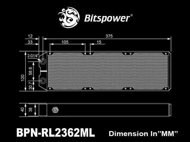 Bitspower Leviathan II 360 Radiator with Single Wave Fins (Thickness 40mm) A key component of water cooling loops, the Bitspower Leviathan II 360 Radiator can be equipped with fans (fans are sold separately), which is helpful for effective heat dissipation. The radiator is made of copper which has high thermal conductivity. Concise wave-shaped heat dissipation fins, greatly increase the heat dissipation area. Used with fans, it will effectively dissipate heat from the water cooling loop, and reduce the water temperature.