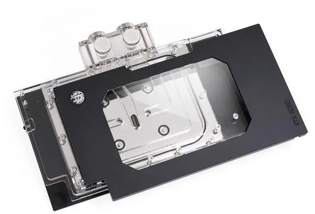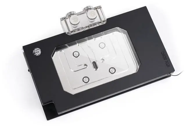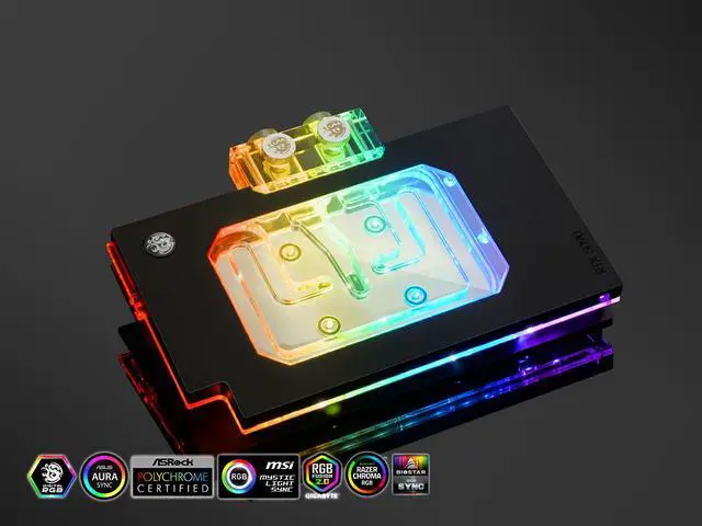 The full-cover water block is precisely machined from nickel- and chromium-plated copper, ensuring maximum contact with the GPU and VRM for superior heat dissipation. The clear acrylic top showcases a built-in Bitspower Digital RGB LED strip, adding brilliant illumination to your loop.