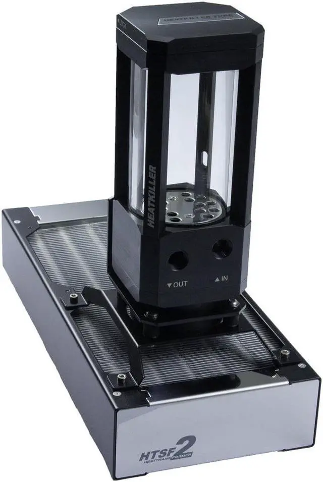 With this mounting solution, a HEATKILLER® Tube reservoir can be mounted on a 120mm fan. It's also possible to mount it onto a horizontal radiator or 120mm fan mounting holes.