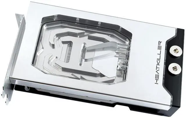 HK V PRO series: High performance base plateSelected high-performance thermal pads on the GDDR6X RAMDual layer inflowSymmetrical cooling designDesign-integrated connection threads in the terminalScrewless designInsulating spacers made of high-performance plastic (peek) Plug-in system with aRGB stripesCNC cut thermal padsModular high-performance base plateIn order to increase the cooling performance in the GPU core area, we have integrated a modular high-performance base plate into the heat sink. With finely slotted fins and the associated increase in the cooling surface, this ensures a significantly higher cooling capacity than a monolithic design is capable of. We chose the fin structure in such a way that, in addition to increasing the performance of the GPU core, the flow rate is also kept high. All distances to heat-relevant components were kept tight, which means that the heat from thermal problem areas such as GDDR6X RAM and voltage converters is ideally dissipated. The PEEK spacers made of high-performance plastic ideally insulate the cooler from the circuit board and facilitate assembly. The legendary Kryonaut thermal paste from Thermal Grizzly ensures the best possible heat transfer. Dual layer inflow and symmetrical cooling designThe dual-layer inflow can be found, like the symmetrical cooling design, in the PRO version of our HEATKILLER V GPU cooler.