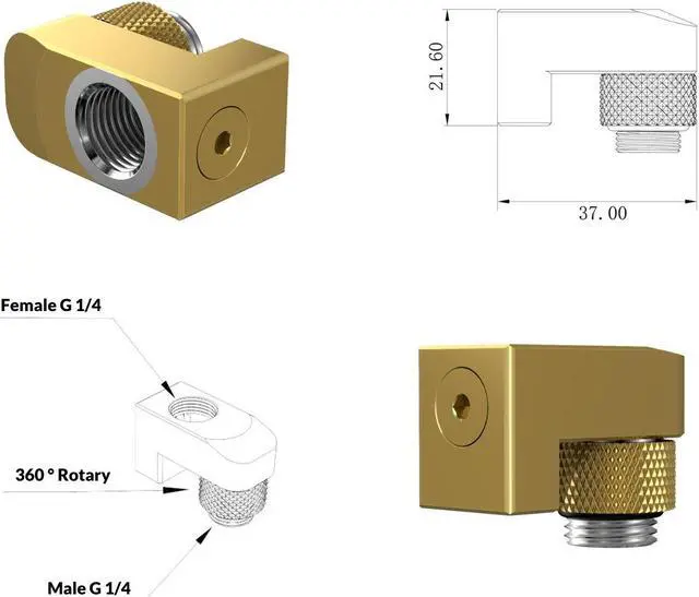 • Package includes 1x PrimoChill Male to Female G 1/4in. Supported Offset Rotary Fitting and 1x Installed oring on male threaded side for a secure and leak-free connection.