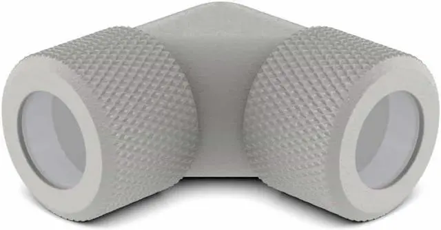 The PrimoChill 12mm Rigid SX 90 Degree Fitting Set is for 12mm outside diameter rigid tubing. This fitting combination allows you to make a compact 90 degree bend without altering your tubing.