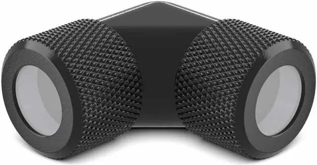 The PrimoChill 12mm Rigid SX 90 Degree Fitting Set is for 12mm outside diameter rigid tubing. This fitting combination allows you to make a compact 90 degree bend without altering your tubing.