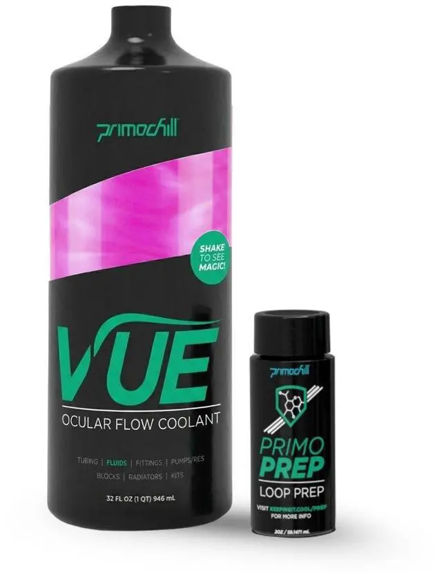 PrimoChills Vue was specifically developed for that experienced user looking to create an unrivaled aesthetic in their liquid cooled PC. Vue's exclusive water-based formulation allows it to stay suspended longer allowing longevity and an easy flush to any system. Released in 2017, Vue has withstood the test of time and is still a favorite show fluid in the watercooling community. With its unique visual traits, Vue is sure to bring another dimension to any loop.
