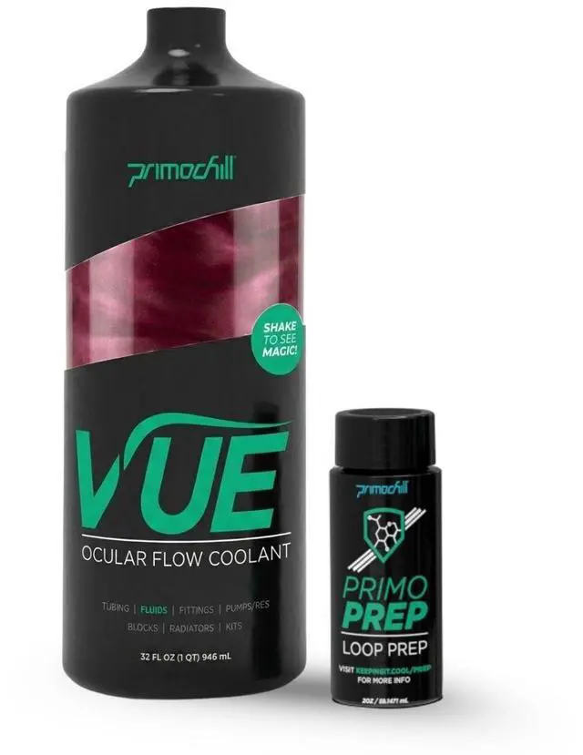 PrimoChills Vue was specifically developed for that experienced user looking to create an unrivaled aesthetic in their liquid cooled PC. Vue's exclusive water-based formulation allows it to stay suspended longer allowing longevity and an easy flush to any system. Released in 2017, Vue has withstood the test of time and is still a favorite show fluid in the watercooling community. With its unique visual traits, Vue is sure to bring another dimension to any loop.