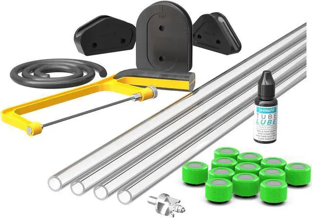 • Parts Included: 4 x 750mm Acrylic tube, 12x Rigid Metric Series Fitting, 1x Rigid Tube Solid Bending Cord (3 feet), 1x Mini Hack Saw for cutting tube, 1x Tube Lube, 1x RFB Rigid Tubing Finishing Bit, 1x 45/90/180 Degree Bending Kit