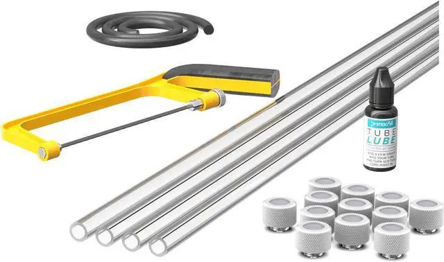 • Parts Included: 4 Pieces of 750mm Acrylic tube. 12x Rigid Metric Series Fitting. 1x Rigid Tube. Solid Bending Cord (3 feet). 1x Mini Hack Saw for cutting tube. 1x Tube Lube