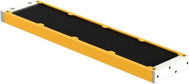 The internal core is designed with seven dual-pass coolant channels made of copper, which ensures efficient system flow and effective cooling. The layout of an all-copper fin is precisely engineered to maximize performance without needing high-speed fans, thus maintaining the Eximo's top-tier cooling performance. The newly designed inlet tank features a total of four ports (two inlets and two outlets), providing users with the flexibility to connect coolant lines from either a horizontal or vertical direction. The slim end plate reduces the radiator's total length and makes installation easier in space-confined computer cases. You can remove both tanks to gain direct access to the inner core. This allows you to perform maintenance and cleaning on the core when replacing coolants or rebuilding your loop.