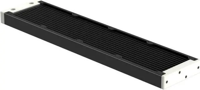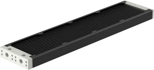 The internal core is designed with seven dual-pass coolant channels made of copper, which ensures efficient system flow and effective cooling. The layout of an all-copper fin is precisely engineered to maximize performance without needing high-speed fans, thus maintaining the Eximo's top-tier cooling performance. The newly designed inlet tank features a total of four ports (two inlets and two outlets), providing users with the flexibility to connect coolant lines from either a horizontal or vertical direction. The slim end plate reduces the radiator's total length and makes installation easier in space-confined computer cases. You can remove both tanks to gain direct access to the inner core. This allows you to perform maintenance and cleaning on the core when replacing coolants or rebuilding your loop.