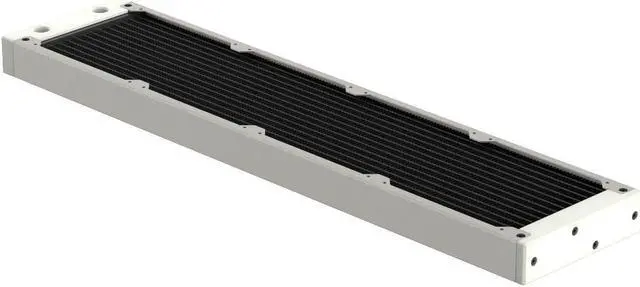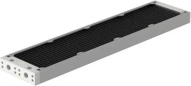 The internal core is designed with seven dual-pass coolant channels made of copper, which ensures efficient system flow and effective cooling. The layout of an all-copper fin is precisely engineered to maximize performance without needing high-speed fans, thus maintaining the Eximo's top-tier cooling performance. The newly designed inlet tank features a total of four ports (two inlets and two outlets), providing users with the flexibility to connect coolant lines from either a horizontal or vertical direction. The slim end plate reduces the radiator's total length and makes installation easier in space-confined computer cases. You can remove both tanks to gain direct access to the inner core. This allows you to perform maintenance and cleaning on the core when replacing coolants or rebuilding your loop.