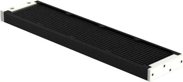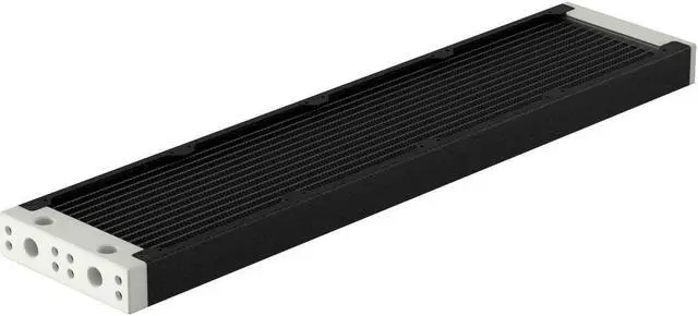 The internal core is designed with seven dual-pass coolant channels made of copper, which ensures efficient system flow and effective cooling. The layout of an all-copper fin is precisely engineered to maximize performance without needing high-speed fans, thus maintaining the Eximo's top-tier cooling performance. The newly designed inlet tank features a total of four ports (two inlets and two outlets), providing users with the flexibility to connect coolant lines from either a horizontal or vertical direction. The slim end plate reduces the radiator's total length and makes installation easier in space-confined computer cases. You can remove both tanks to gain direct access to the inner core. This allows you to perform maintenance and cleaning on the core when replacing coolants or rebuilding your loop.
