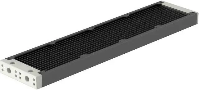 The internal core is designed with seven dual-pass coolant channels made of copper, which ensures efficient system flow and effective cooling. The layout of an all-copper fin is precisely engineered to maximize performance without needing high-speed fans, thus maintaining the Eximo's top-tier cooling performance. The newly designed inlet tank features a total of four ports (two inlets and two outlets), providing users with the flexibility to connect coolant lines from either a horizontal or vertical direction. The slim end plate reduces the radiator's total length and makes installation easier in space-confined computer cases. You can remove both tanks to gain direct access to the inner core. This allows you to perform maintenance and cleaning on the core when replacing coolants or rebuilding your loop.