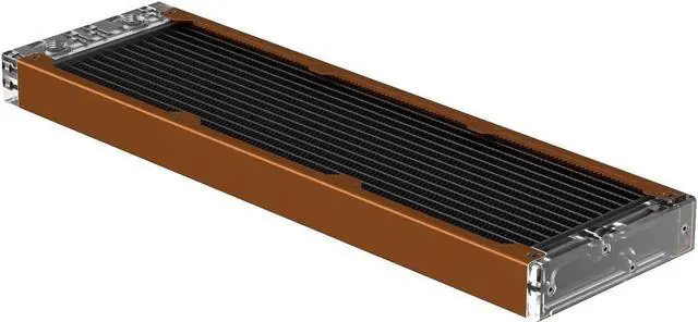 The internal core is designed with seven dual-pass coolant channels made of copper, which ensures efficient system flow and effective cooling. The layout of an all-copper fin is precisely engineered to maximize performance without needing high-speed fans, thus maintaining the Eximo's top-tier cooling performance. The newly designed inlet tank features a total of four ports (two inlets and two outlets), providing users with the flexibility to connect coolant lines from either a horizontal or vertical direction. The slim end plate reduces the radiator's total length and makes installation easier in space-confined computer cases. You can remove both tanks to gain direct access to the inner core. This allows you to perform maintenance and cleaning on the core when replacing coolants or rebuilding your loop.