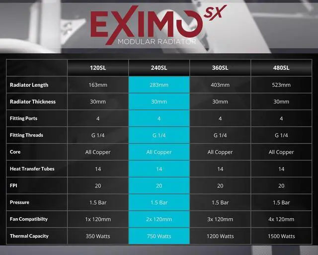 • 1x 240SL (30mm) EXIMO Modular Radiator