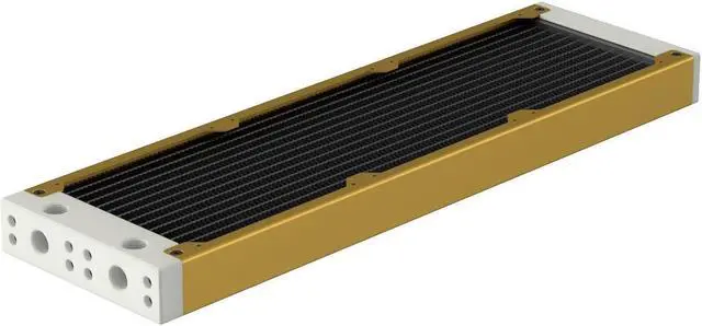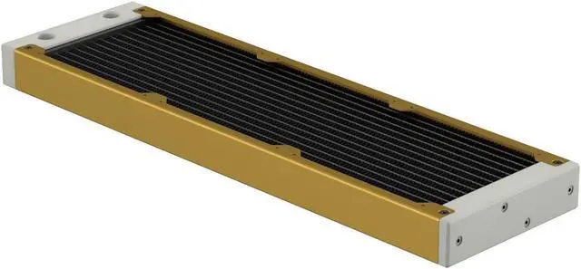 The internal core is designed with seven dual-pass coolant channels made of copper, which ensures efficient system flow and effective cooling. The layout of an all-copper fin is precisely engineered to maximize performance without needing high-speed fans, thus maintaining the Eximo's top-tier cooling performance. The newly designed inlet tank features a total of four ports (two inlets and two outlets), providing users with the flexibility to connect coolant lines from either a horizontal or vertical direction. The slim end plate reduces the radiator's total length and makes installation easier in space-confined computer cases. You can remove both tanks to gain direct access to the inner core. This allows you to perform maintenance and cleaning on the core when replacing coolants or rebuilding your loop.