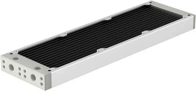 The internal core is designed with seven dual-pass coolant channels made of copper, which ensures efficient system flow and effective cooling. The layout of an all-copper fin is precisely engineered to maximize performance without needing high-speed fans, thus maintaining the Eximo's top-tier cooling performance. The newly designed inlet tank features a total of four ports (two inlets and two outlets), providing users with the flexibility to connect coolant lines from either a horizontal or vertical direction. The slim end plate reduces the radiator's total length and makes installation easier in space-confined computer cases. You can remove both tanks to gain direct access to the inner core. This allows you to perform maintenance and cleaning on the core when replacing coolants or rebuilding your loop.