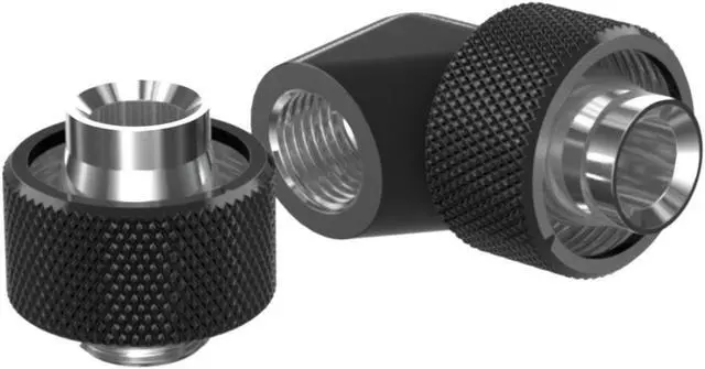 Introducing the SecureFit SX Premium 90 Degree Compression Fitting Set, designed to provide a seamless and secure connection for your liquid cooling systems. Specifically crafted for 1/2-inch ID by 3/4-inch OD flexible tubing, this fitting ensures a guaranteed fit with PrimoFlex LRT tubing. Engineered to meet the demands of enthusiasts and professionals alike, it delivers a reliable seal and exceptional compression fit. Rest easy knowing that your system's integrity will be maintained under various operational conditions. Experience the ultimate peace of mind and performance with the SecureFit SX Premium Compression Fitting, backed by a guaranteed fit with PrimoFlex LRT tubing.