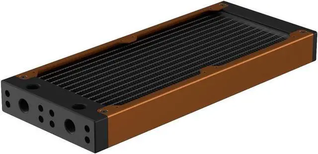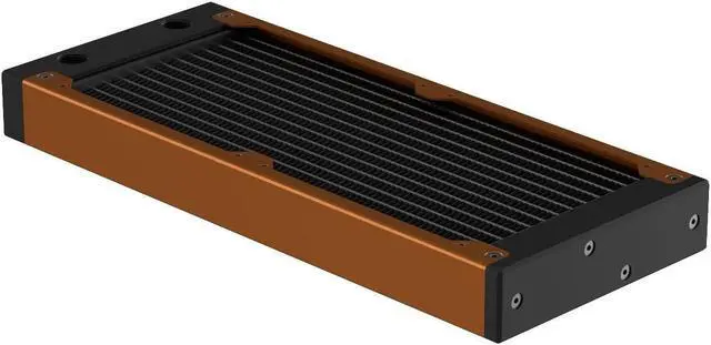 The internal core is designed with seven dual-pass coolant channels made of copper, which ensures efficient system flow and effective cooling. The layout of an all-copper fin is precisely engineered to maximize performance without needing high-speed fans, thus maintaining the Eximo's top-tier cooling performance. The newly designed inlet tank features a total of four ports (two inlets and two outlets), providing users with the flexibility to connect coolant lines from either a horizontal or vertical direction. The slim end plate reduces the radiator's total length and makes installation easier in space-confined computer cases. You can remove both tanks to gain direct access to the inner core. This allows you to perform maintenance and cleaning on the core when replacing coolants or rebuilding your loop.