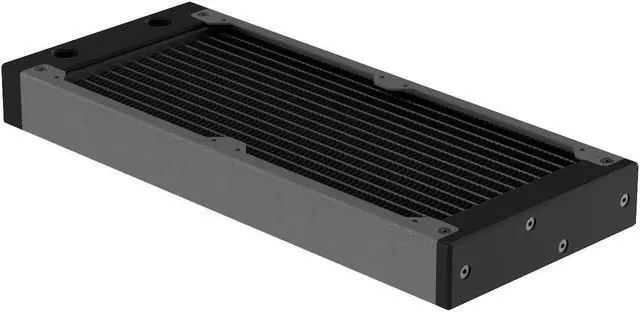 The internal core is designed with seven dual-pass coolant channels made of copper, which ensures efficient system flow and effective cooling. The layout of an all-copper fin is precisely engineered to maximize performance without needing high-speed fans, thus maintaining the Eximo's top-tier cooling performance. The newly designed inlet tank features a total of four ports (two inlets and two outlets), providing users with the flexibility to connect coolant lines from either a horizontal or vertical direction. The slim end plate reduces the radiator's total length and makes installation easier in space-confined computer cases. You can remove both tanks to gain direct access to the inner core. This allows you to perform maintenance and cleaning on the core when replacing coolants or rebuilding your loop.