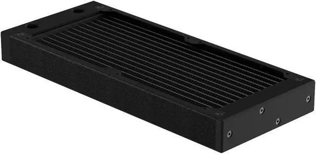 The internal core is designed with seven dual-pass coolant channels made of copper, which ensures efficient system flow and effective cooling. The layout of an all-copper fin is precisely engineered to maximize performance without needing high-speed fans, thus maintaining the Eximo's top-tier cooling performance. The newly designed inlet tank features a total of four ports (two inlets and two outlets), providing users with the flexibility to connect coolant lines from either a horizontal or vertical direction. The slim end plate reduces the radiator's total length and makes installation easier in space-confined computer cases. You can remove both tanks to gain direct access to the inner core. This allows you to perform maintenance and cleaning on the core when replacing coolants or rebuilding your loop.