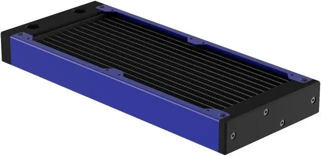 The internal core is designed with seven dual-pass coolant channels made of copper, which ensures efficient system flow and effective cooling. The layout of an all-copper fin is precisely engineered to maximize performance without needing high-speed fans, thus maintaining the Eximo's top-tier cooling performance. The newly designed inlet tank features a total of four ports (two inlets and two outlets), providing users with the flexibility to connect coolant lines from either a horizontal or vertical direction. The slim end plate reduces the radiator's total length and makes installation easier in space-confined computer cases. You can remove both tanks to gain direct access to the inner core. This allows you to perform maintenance and cleaning on the core when replacing coolants or rebuilding your loop.