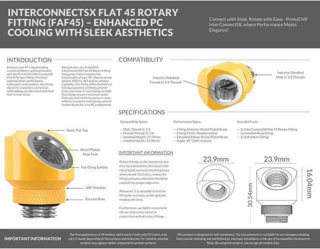 - 1 x PrimoChill InterConnectSX Flat 45 Rotary Fitting