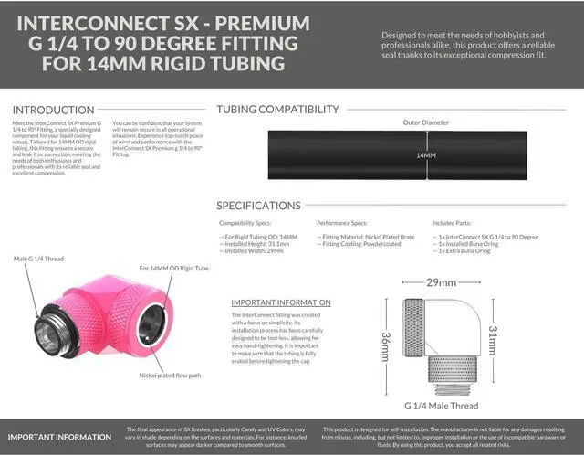 Features:Warning: This product is designed for self-installation. The manufacturer is not liable for any damages resulting from misuse, including, but not limited to, improper installation or the use of incompatible hardware or fluids. By using this product, you accept all related risks.
