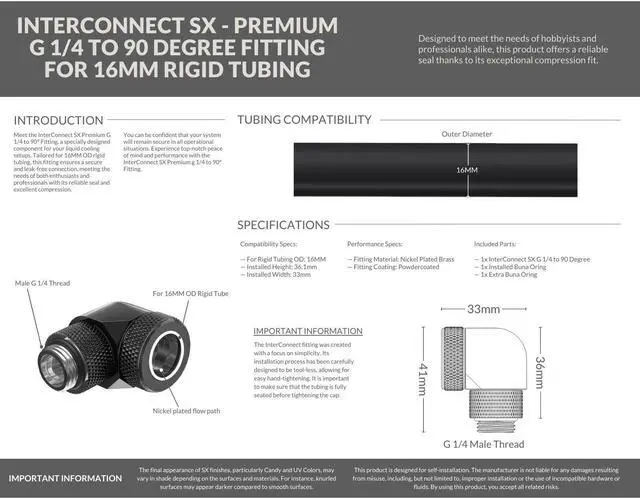 • SECURE INSTALLATION: HIGH-TOLERANCE FITTINGS THAT PROVIDES A SECURE AND LEAK-FREE CONNECTION TO YOUR COOLING COMPONENTS.