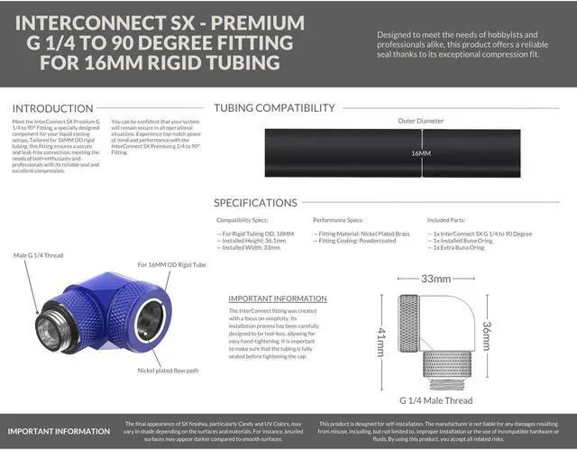 Features:Warning: This product is designed for self-installation. The manufacturer is not liable for any damages resulting from misuse, including, but not limited to, improper installation or the use of incompatible hardware or fluids. By using this product, you accept all related risks.