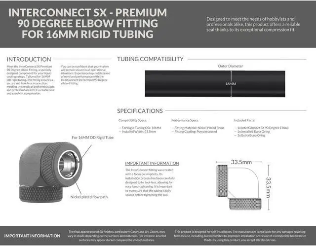 • SECURE INSTALLATION: HIGH-TOLERANCE FITTINGS THAT PROVIDES A SECURE AND LEAK-FREE CONNECTION TO YOUR COOLING COMPONENTS.