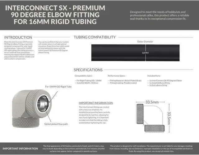 Features:Warning: This product is designed for self-installation. The manufacturer is not liable for any damages resulting from misuse, including, but not limited to, improper installation or the use of incompatible hardware or fluids. By using this product, you accept all related risks.
