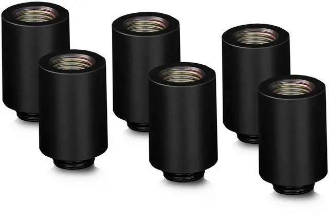 The uniform outer diameter of all DeltaMate fittings ensures seamless integration of individual components. The DeltaMate Extender - MF28 features one G1/4″ male thread and one G1/4″ female thread, and is finished with a matt-black chromium plating that’ s both premium in appearance and easy to clean. Used as an extension fitting, it’ s installed between the water-cooling component’ s port and the fitting, increasing the spacing by 28 mm. Commonly used to add clearance for memory modules and fans or two parallel tubes in the same plane.