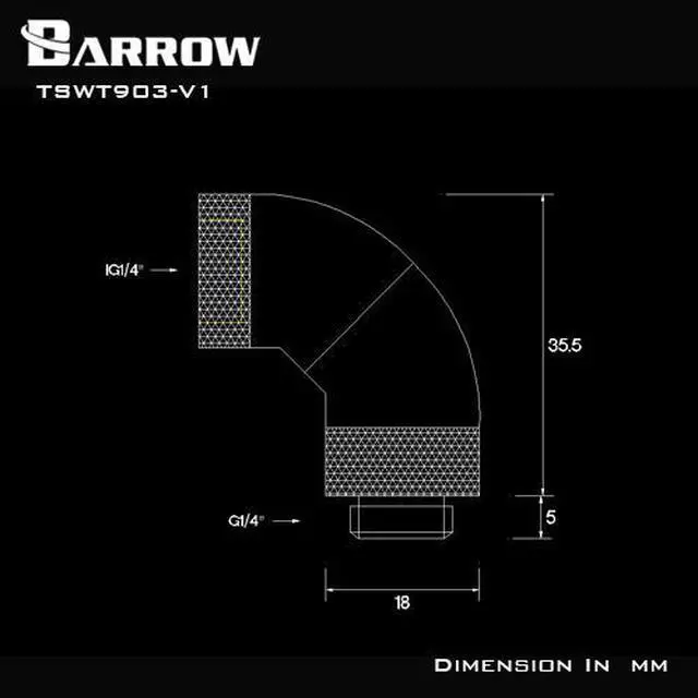 The Barrow G1/4" Matte Black Triple Rotary Serpentine-Style Adapter is perfect for tight liquid cooling loops. This male to female G1/4 thread adapter is perfect for making a quick U-turn or sneaking around internal components that always seems to be right in the way. With the 360° rotary swivel you no longer have to account for tubing kinks and oddly angled tubing.
