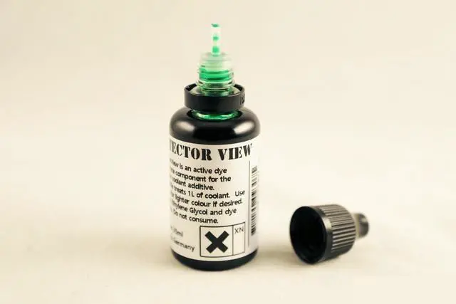 Protector View is an active dye concentrate forDazMode Protectorcoolant additive. One bottle treats 1L of coolant. Use less dye for a lighter color is desired. The picture featuring scientific glass test tubes demonstrates different amounts of dye from a single drop to a generous amount. Mixing with different dye colors is allowed for custom color creation and/or adding UV effect.