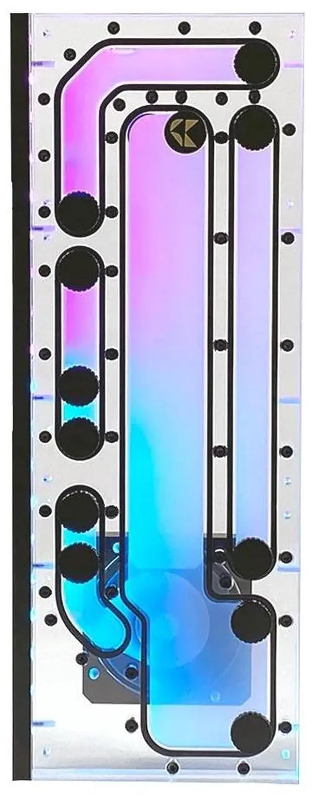 A special highlight of the "Crossflow" is its RGB lighting. The D-RGB panel can be mounted on both the left and right sides. Additionally, the distroplate is compatible with D5 and DDC pumps. Features in detailThe installation of the distroplate is effortless due to the provided threads on the back. There are 8x M3 threads available for attaching the distroplate to the fan bracket, making the mounting process convenient. In addition to its high compatibility with many cases, our distroplate also offers the option to install D-RGB lighting. For RGB enthusiasts, we have something truly special.