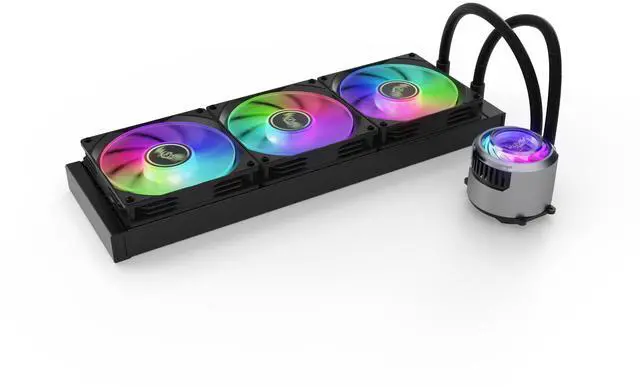 The tubing is reinforced with a corrugated braided sleeve for durability and a clean, premium appearance. The 379 × 120 × 27 mm aluminum radiator provides increased surface area for improved heat dissipation, making it ideal for high-core-count CPUs and heavy workloads. It is equipped with three Valkyrie V12 A-RGB 120 mm fans operating between 800– 1850 RPM ± 10%. Each fan delivers up to 75 CFM ( 127.42 m³ /h) of airflow with 2.23 mmHâ ‚ ‚ O static pressure, ensuring strong airflow through dense radiator fins.