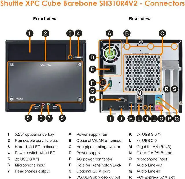 The SH310R4 V2 features Shuttles exclusive heat-pipe cooling system with smart fan design. The clever ventilation design allows for constant air circulation between the inside and outside of the machine resulting in high stability and low noise for long-term operation.