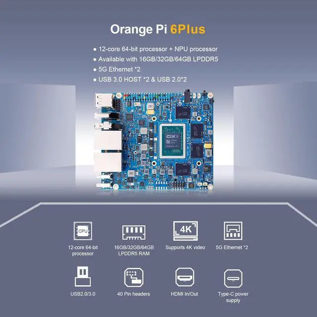 [Open Source & Developer Friendly]: As a fully open-source single board computer, the Orange Pi 6 Plus supports multiple operating systems including Debian, Ubuntu, Android, Windows, ROS2, providing comprehensive technical documentation and resources to help developers get started.