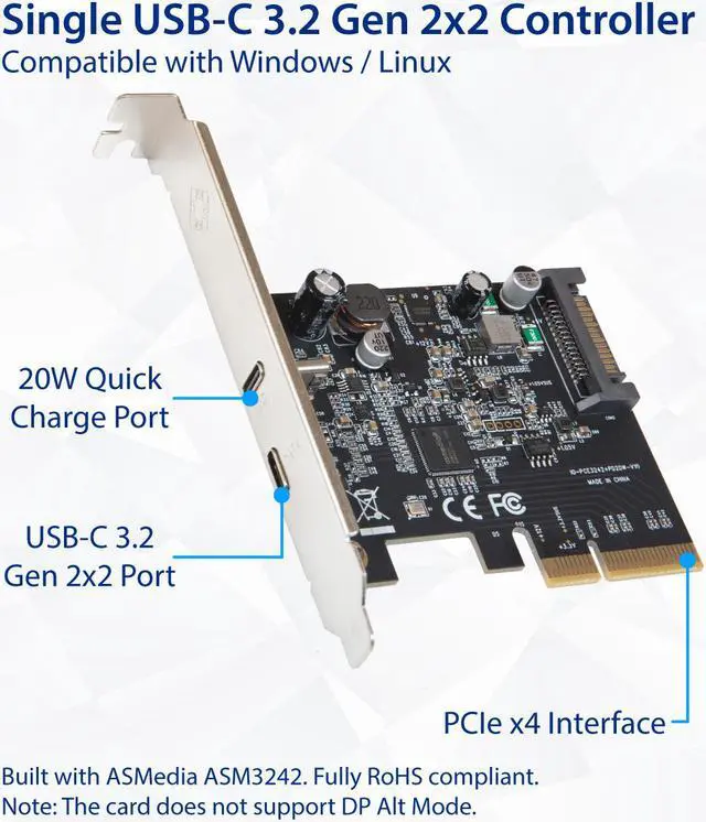 The new expansion card adds full support for the new specification on motherboards with a PCIe x4 slot. With the USB Type-C port design and backward compatibility with USB 2.0/3.0/3.1, the new expansion card offers an affordable way for users to upgrade to the USB 3.2 Gen 2x2 specification without having to get a new motherboard.