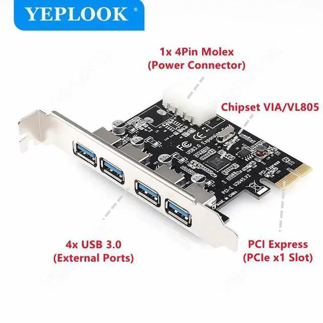 4 Ports USB 3.0 HUB 5Gbps PCIe 1x PCI Express Expansion Control Adapter Card with IDE 4Pin Power Connector Chipset VIA VL805