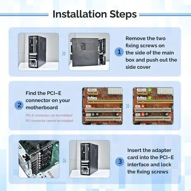 - [Wide compatibility] PCI-E X1 X4 X8 X16 compatible. Note: Not compatible with older PCI, backward compatible with USB 2.0 / 1.1, 64-bit and 32-bit Windows 11 / 10 / 8 / 7 / XP / Linux, not Mac compatible. Note: WIN8 and WIN10/11 users do not need to install the drive; XP and WIN7 users can download, unzip, install, and complete. (The corresponding installation directory for CD is DRIVERS201R30230.EXE.)