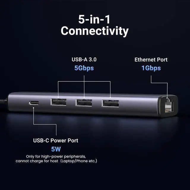5-in-1 USB Ethernet Hub: UGREEN usb to ethernet adapter is equipped with gigabit ethernet port and 3 x USB 3.0 ports. While providing your device with a stable wired network, it's possible to expand more accessories. Great to help you improve productivity