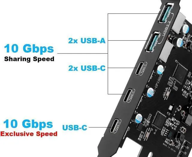 2x USB-A and 2 x USB-C ports Share 10Gpbs Speed